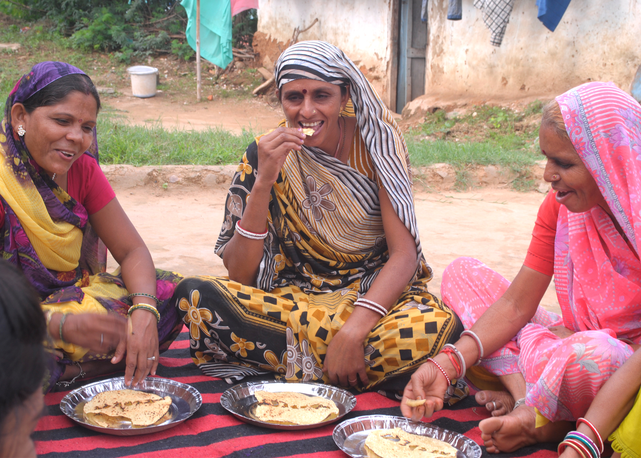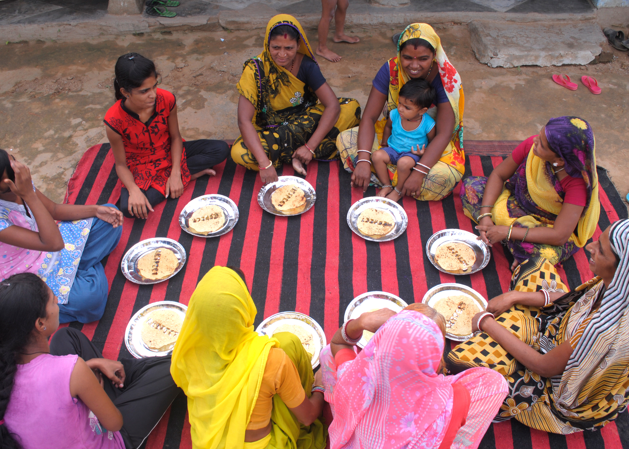 During the project I worked with these women members for a span of more than 6 months and we developed a mutual respect for each other. The work makes the idea of giving respect more literal by consuming it through food. Papads (Papadum) are a very common side dish in this area, and making them is primarily women oriented activity. Several papas were made with a cut out of the word RESPECT, and were roasted and eaten together. The food performance served as another excuse to come together and talk about our experiences from Equilibrium.